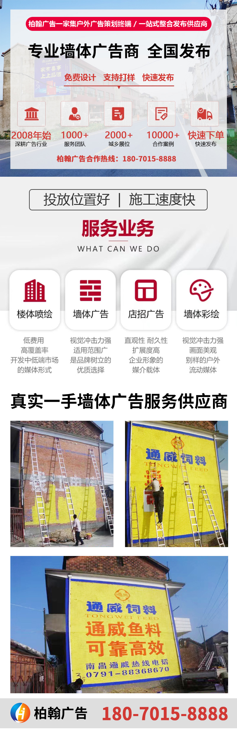 多年專注廣告行業,專(zhuān)業專注,全(quán)國戶外牆體廣告(gào)策劃終端發布商